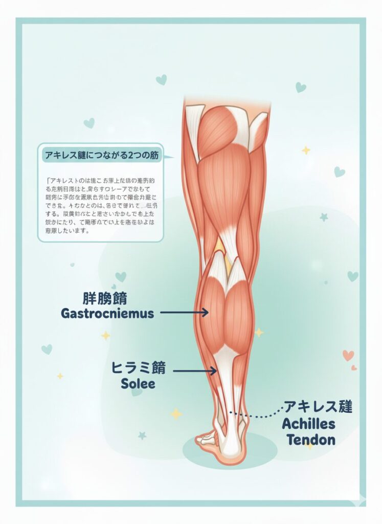 ふくらはぎには表面の腓腹筋と、その奥にあるヒラメ筋があります。